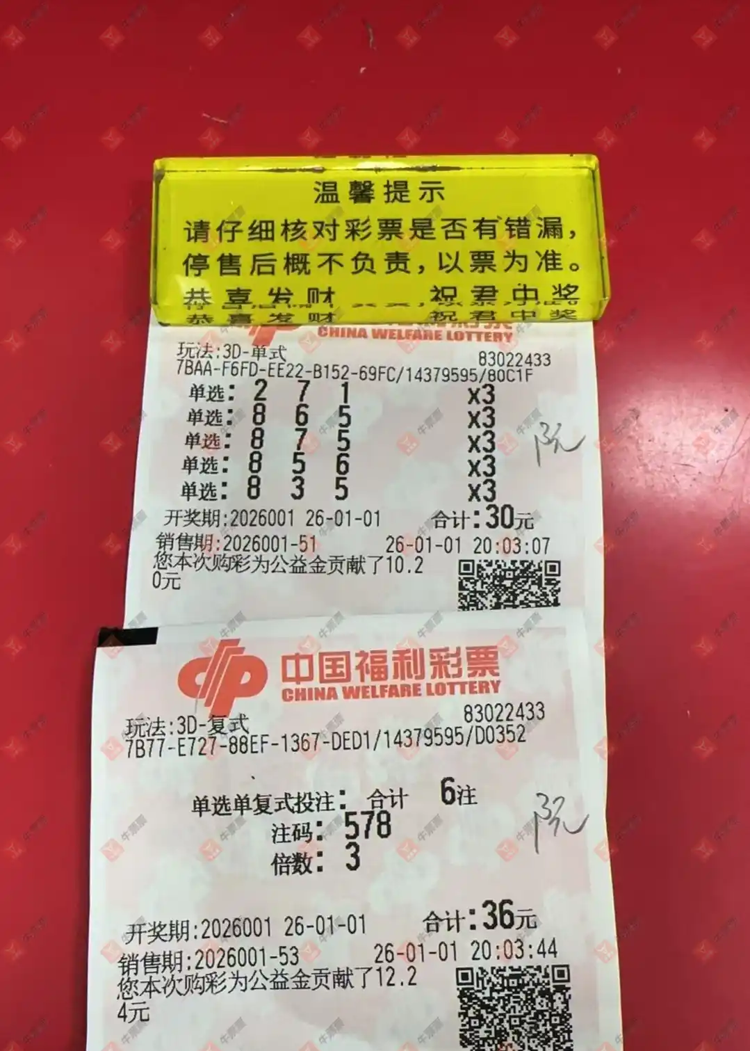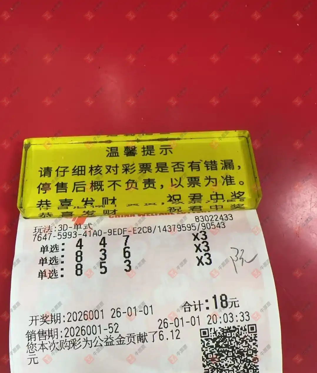福彩3D 2026001期