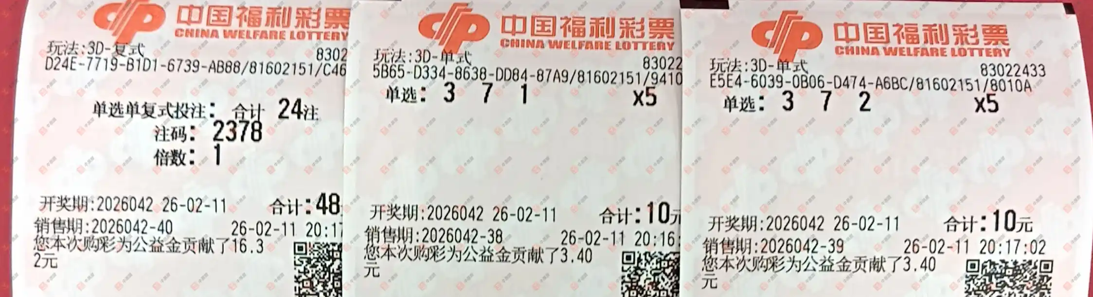 福彩3D 2026043期 晒中