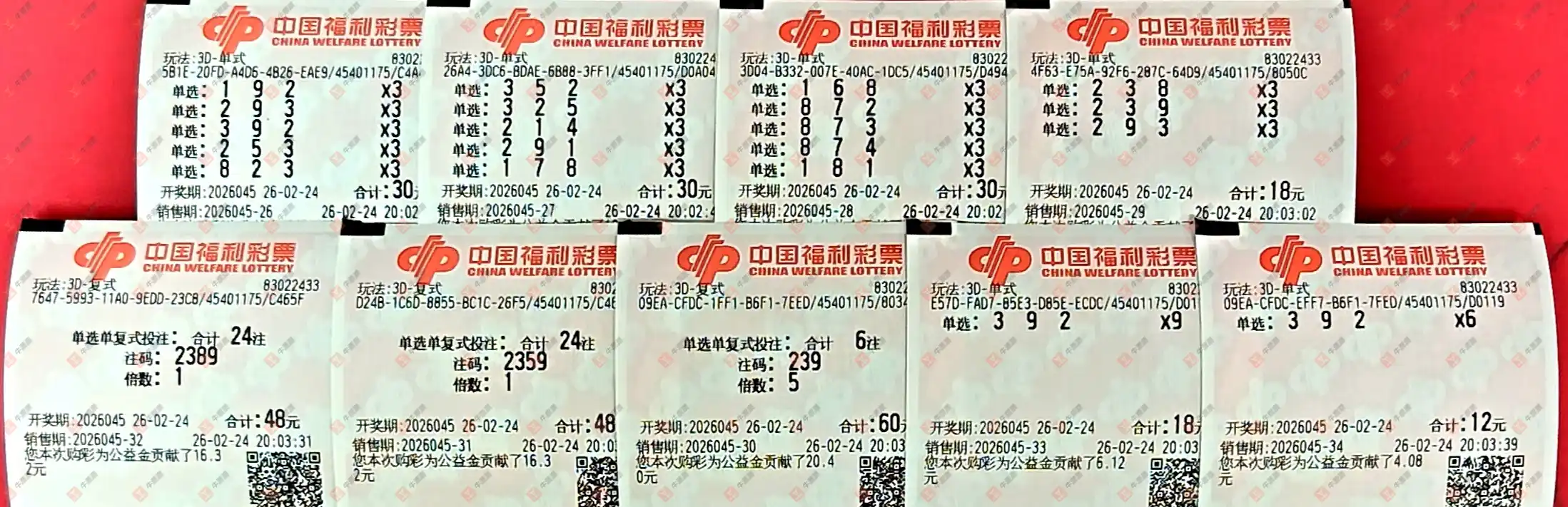 福彩3D 2026045期 晒中