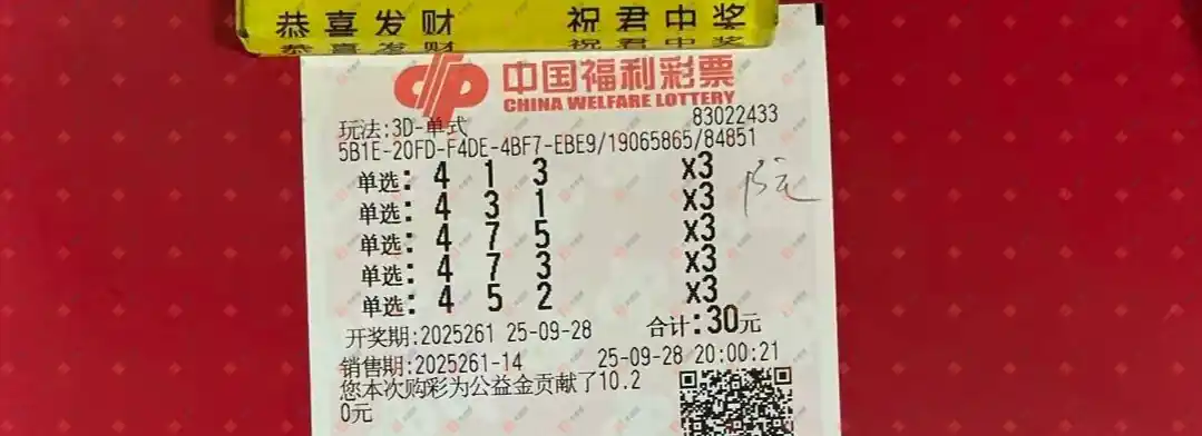 福彩3D 2025261期