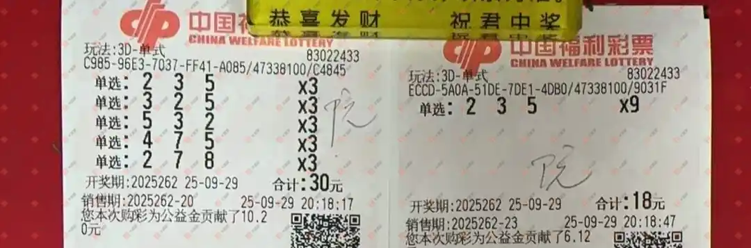 福彩3D 2025262期