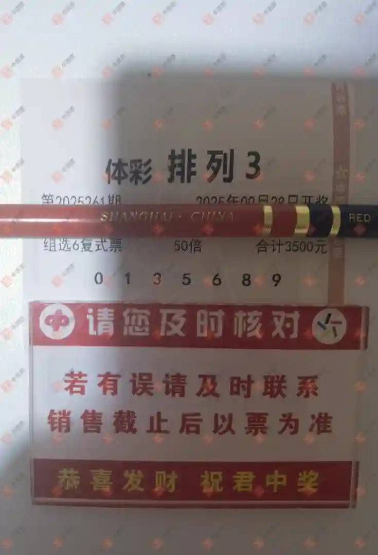 福彩3D 2025261期 晒中