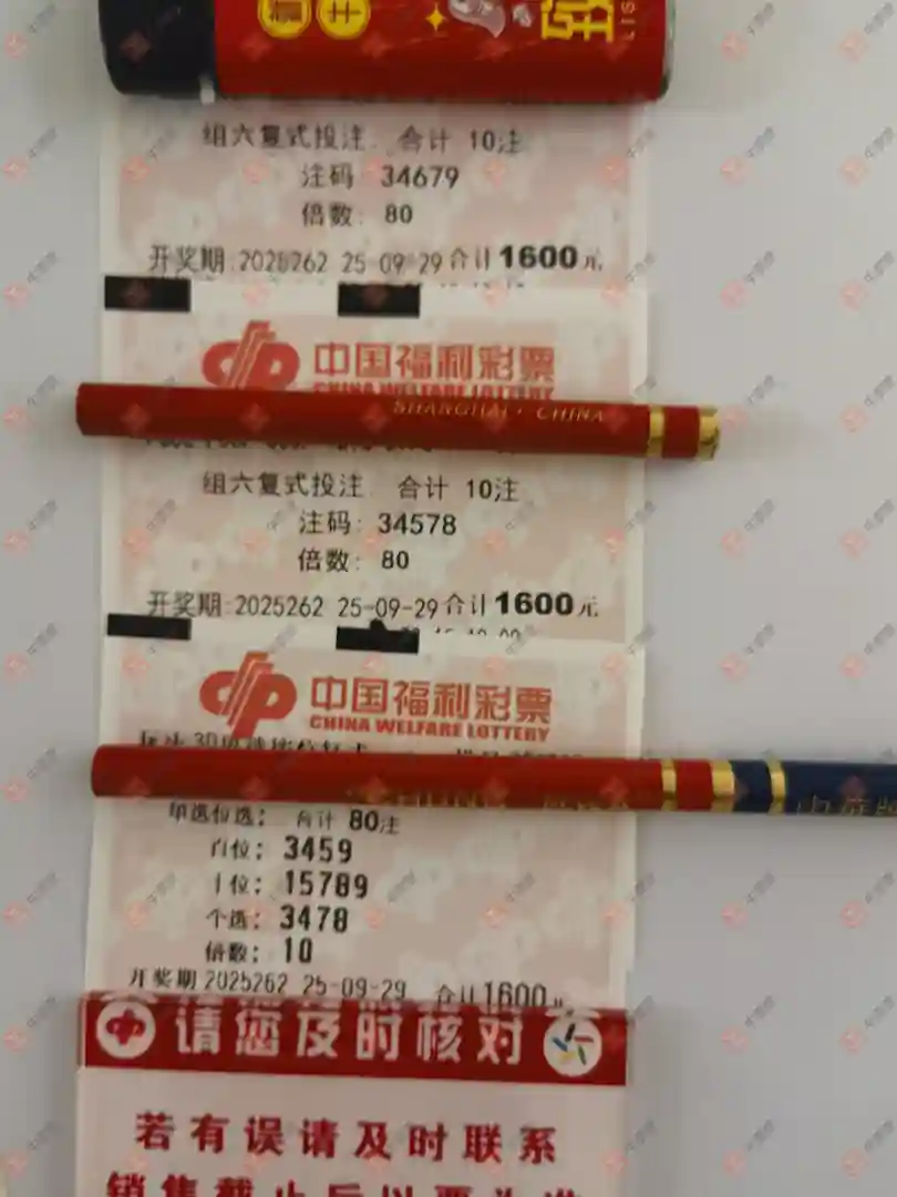 福彩3D 2025262期 晒中