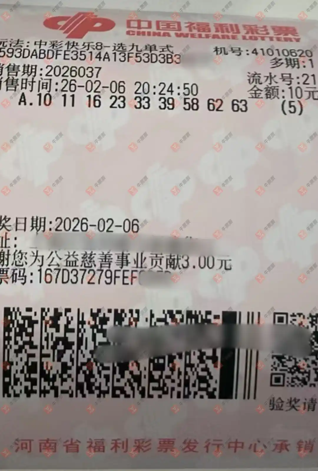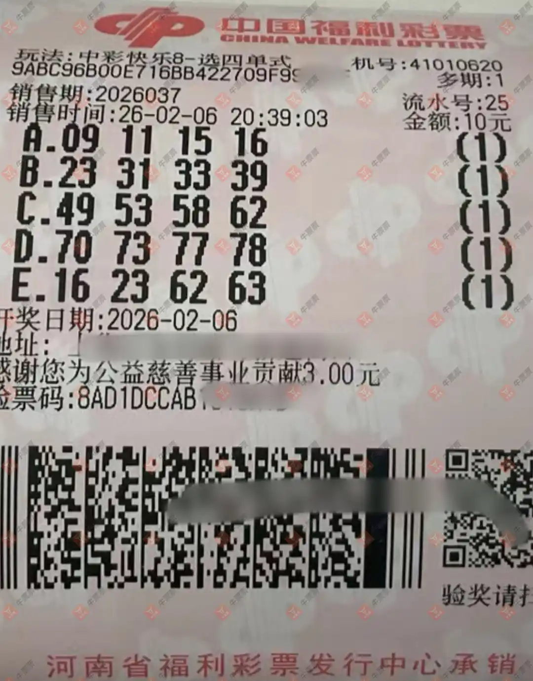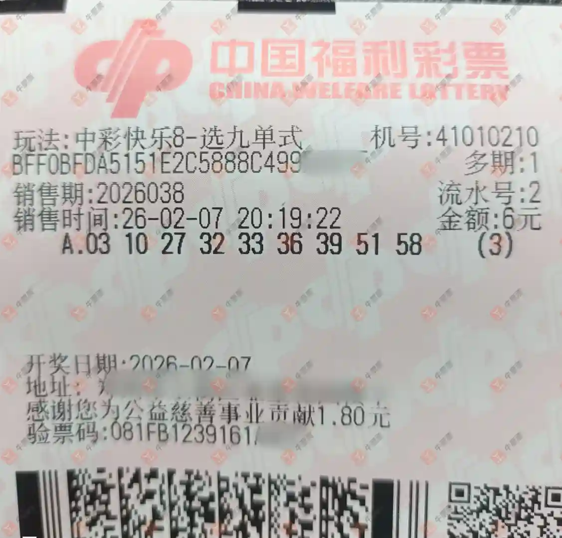快乐8 2026043期 晒中
