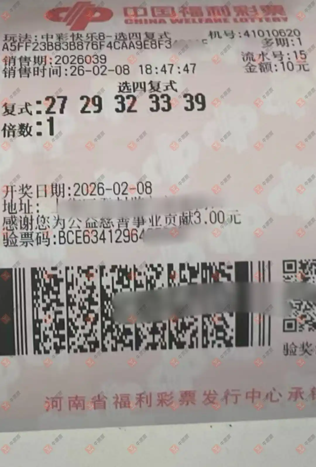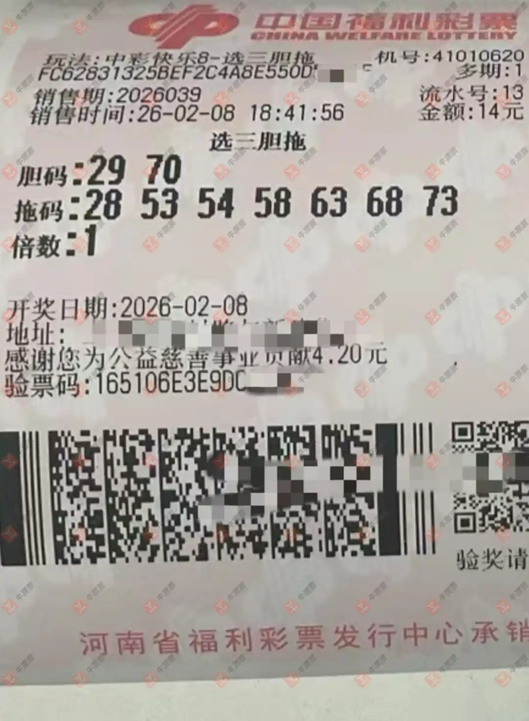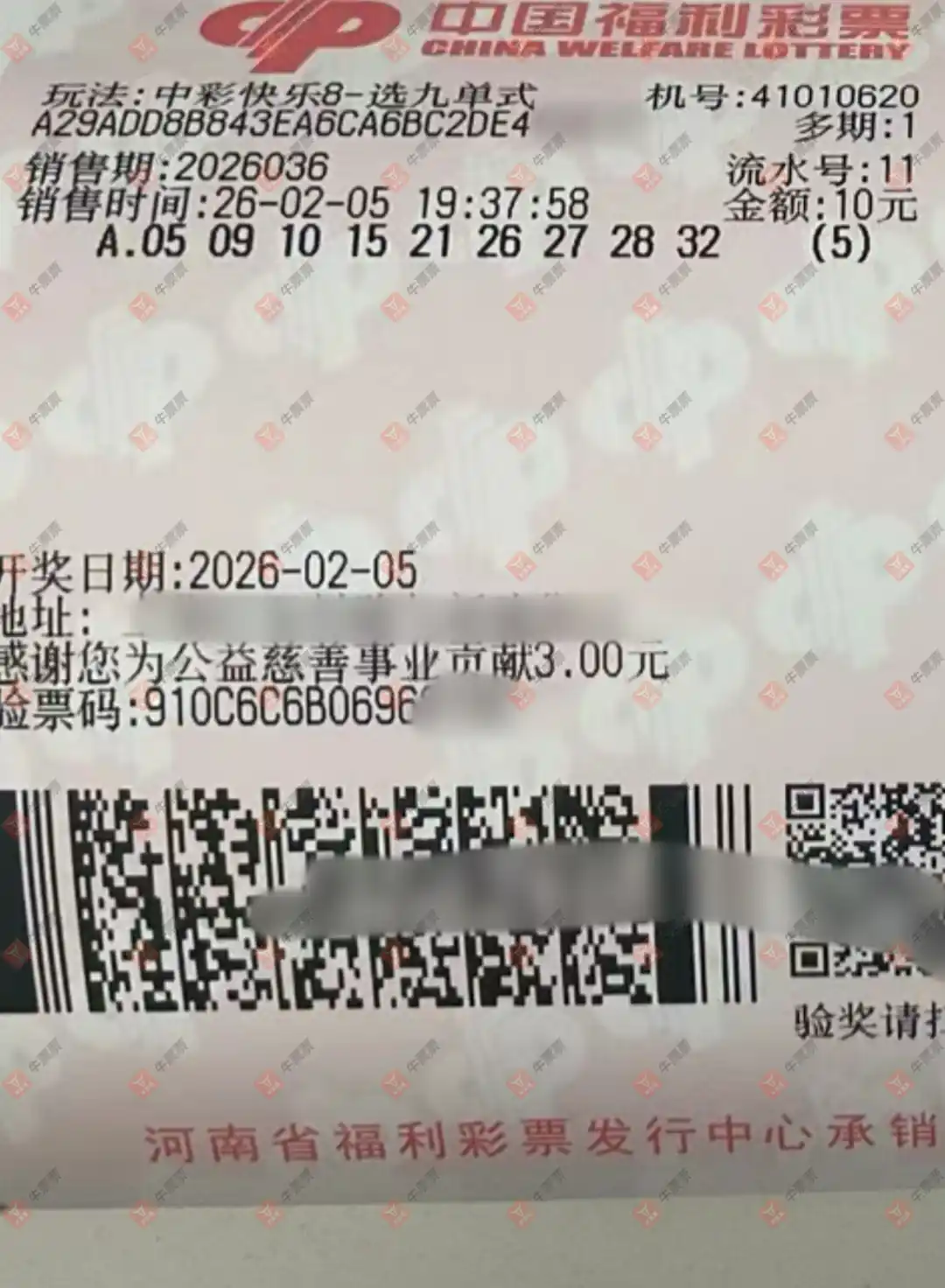 快乐8 2026043期 晒中