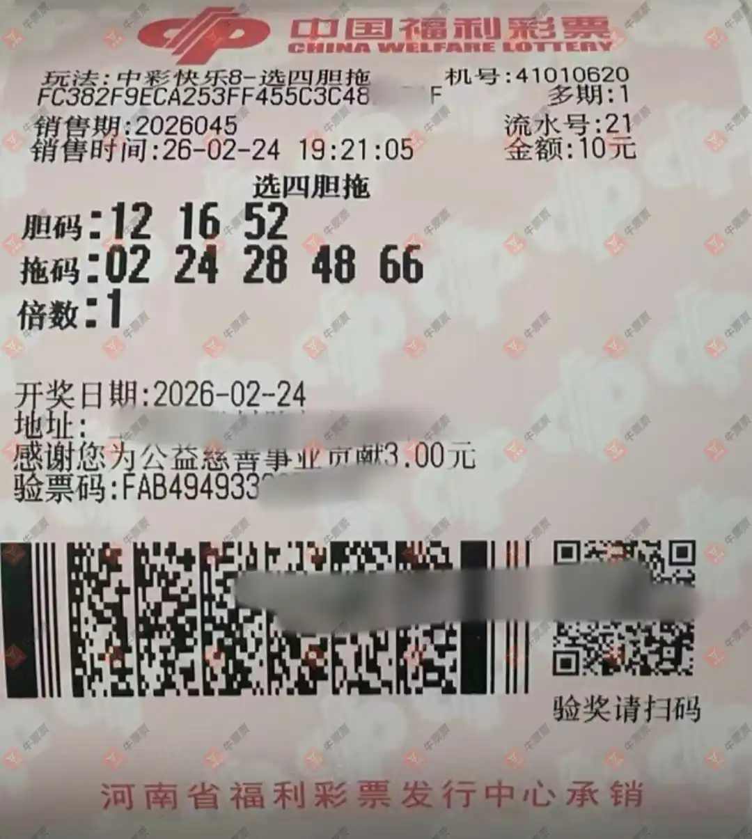 快乐8 2026044期 晒中
