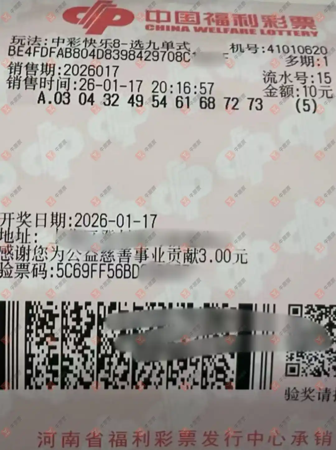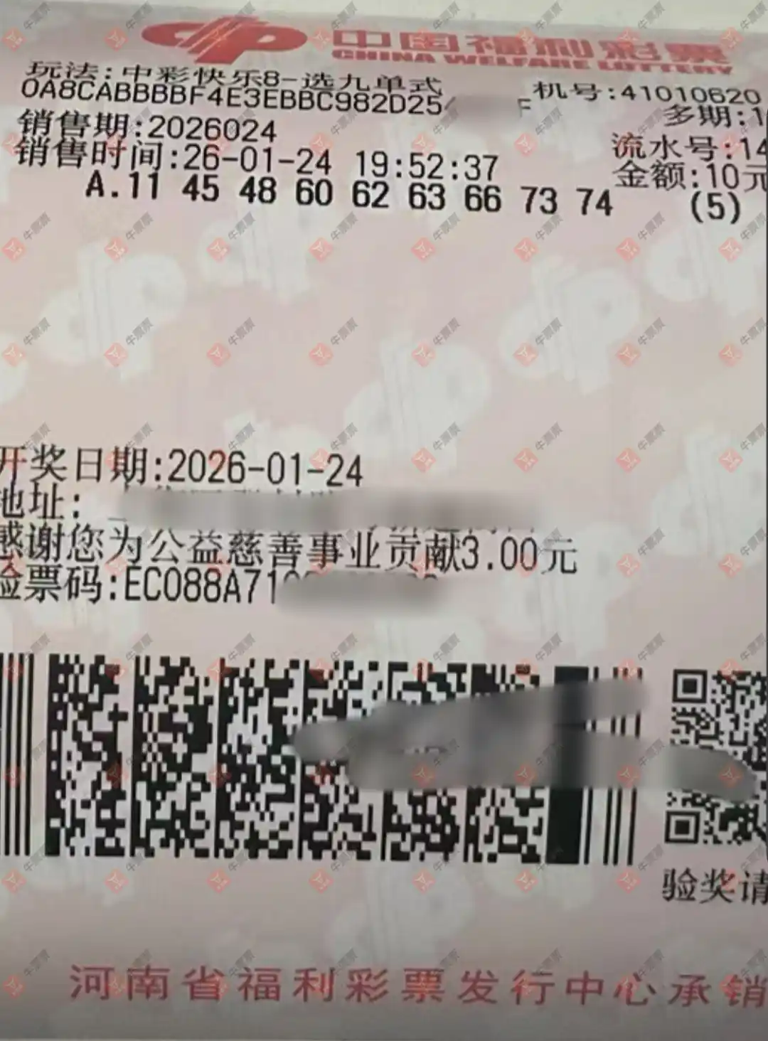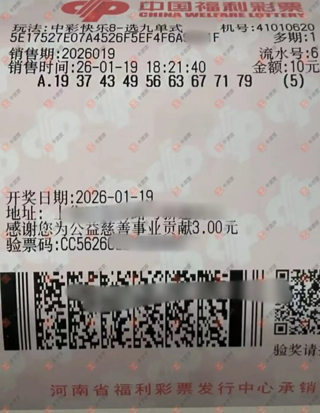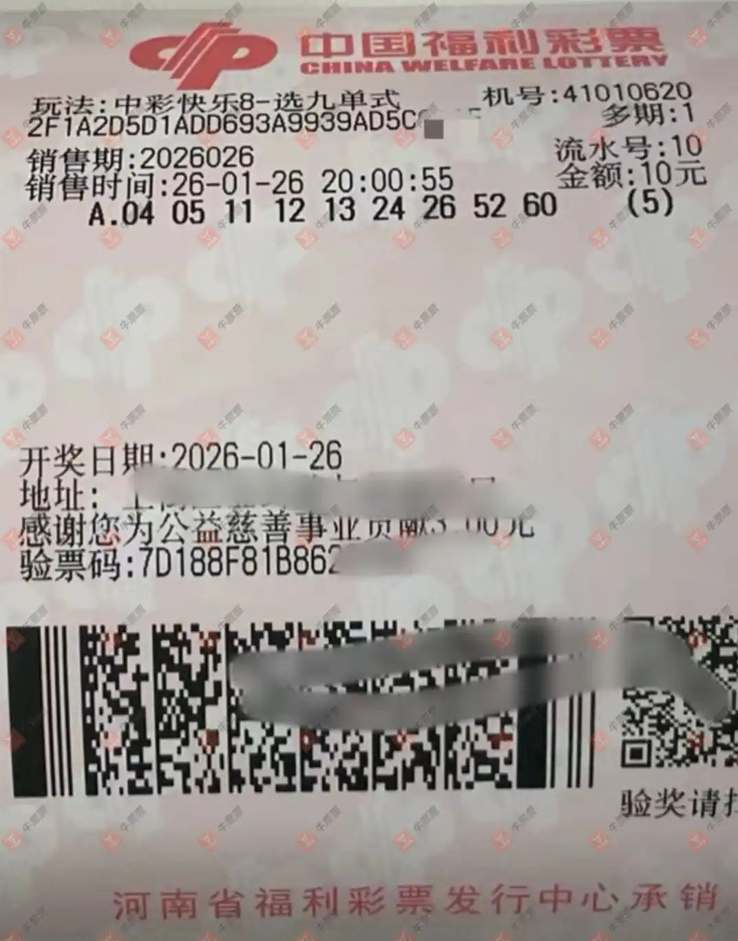 快乐8 2026020期 晒中