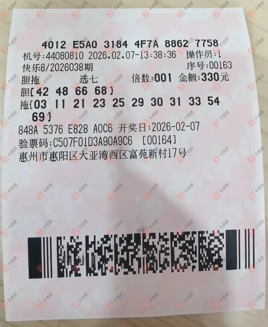 快乐8 2026038期 晒中