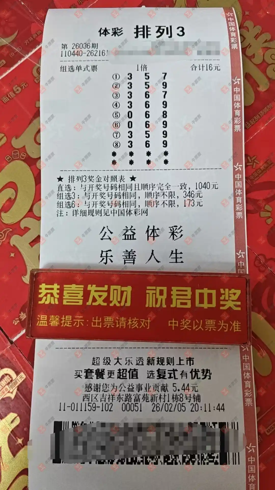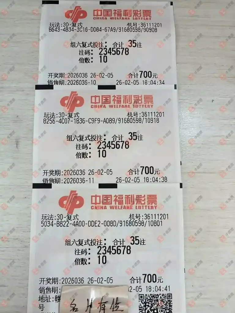 福彩3D 2026036期 晒中