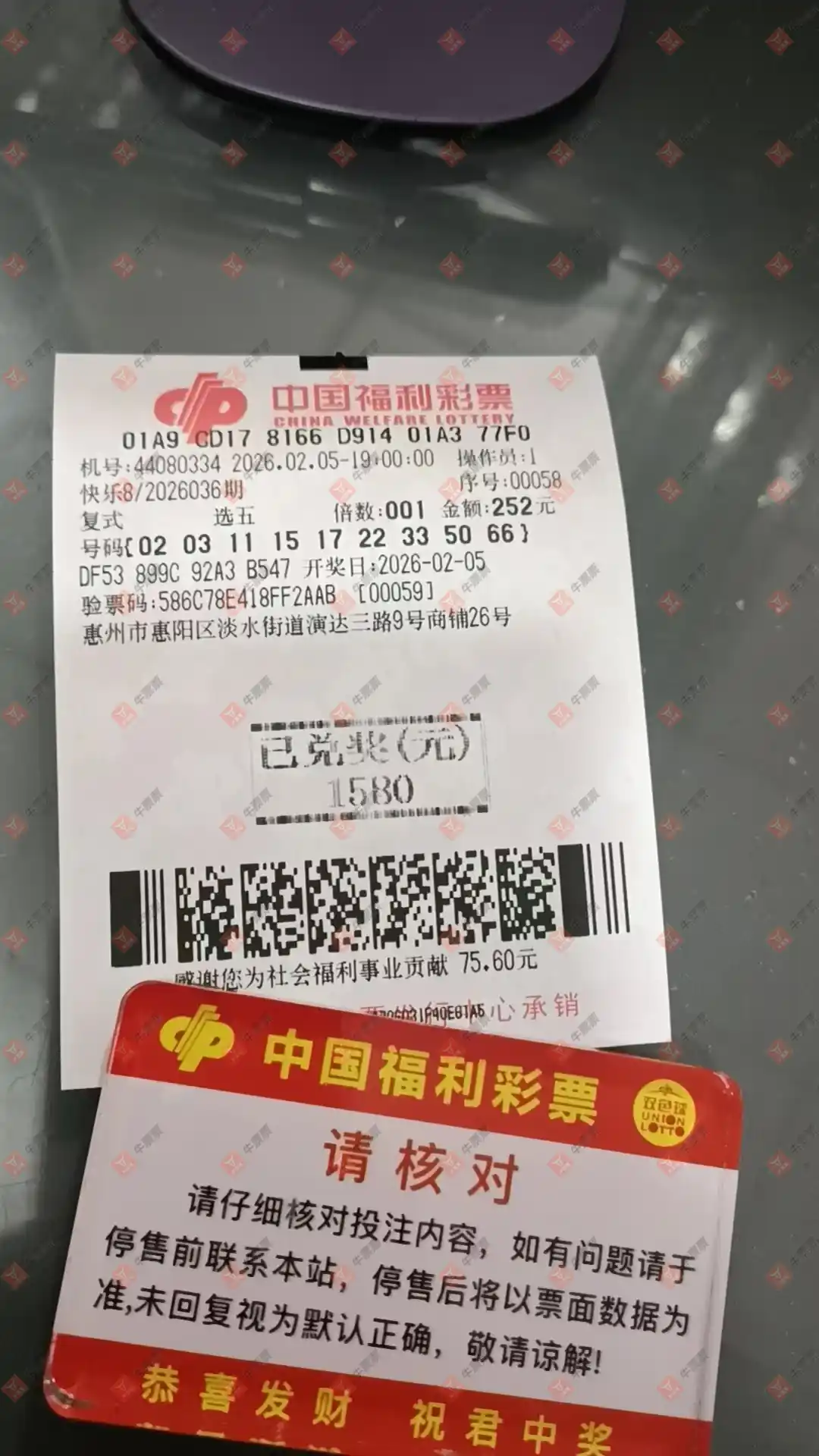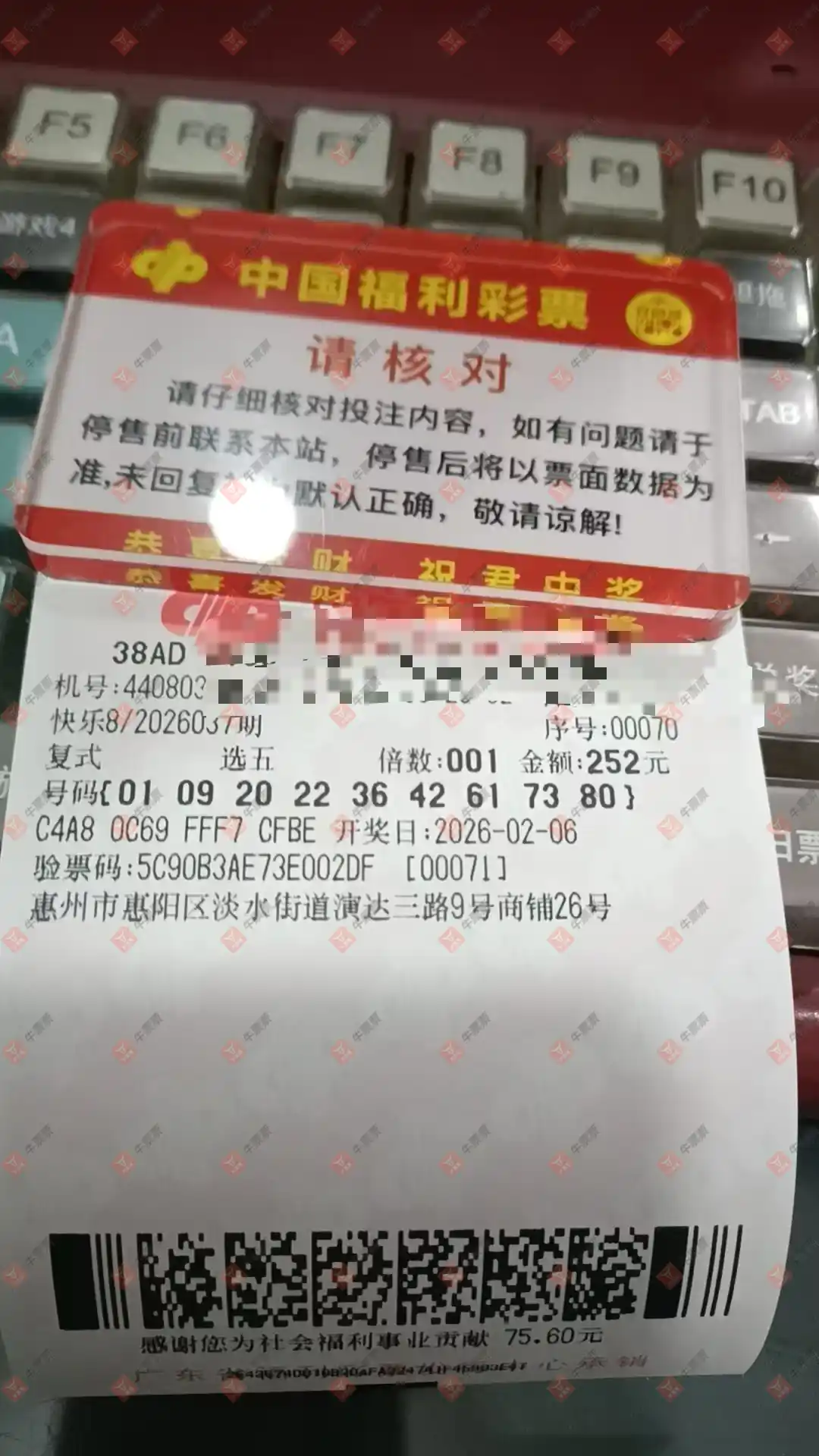 快乐8 2026036期 晒中