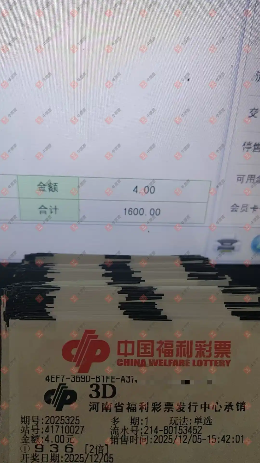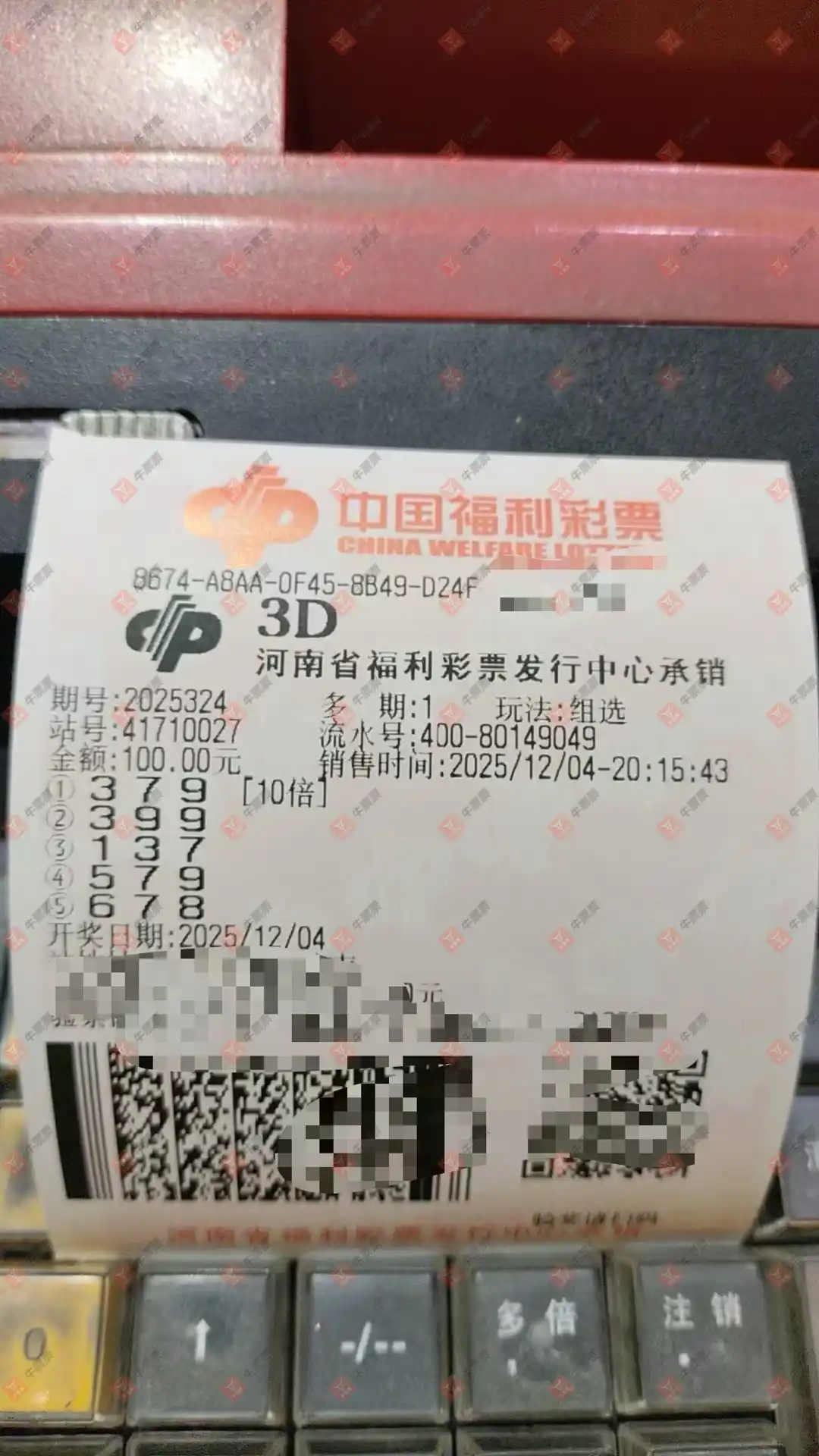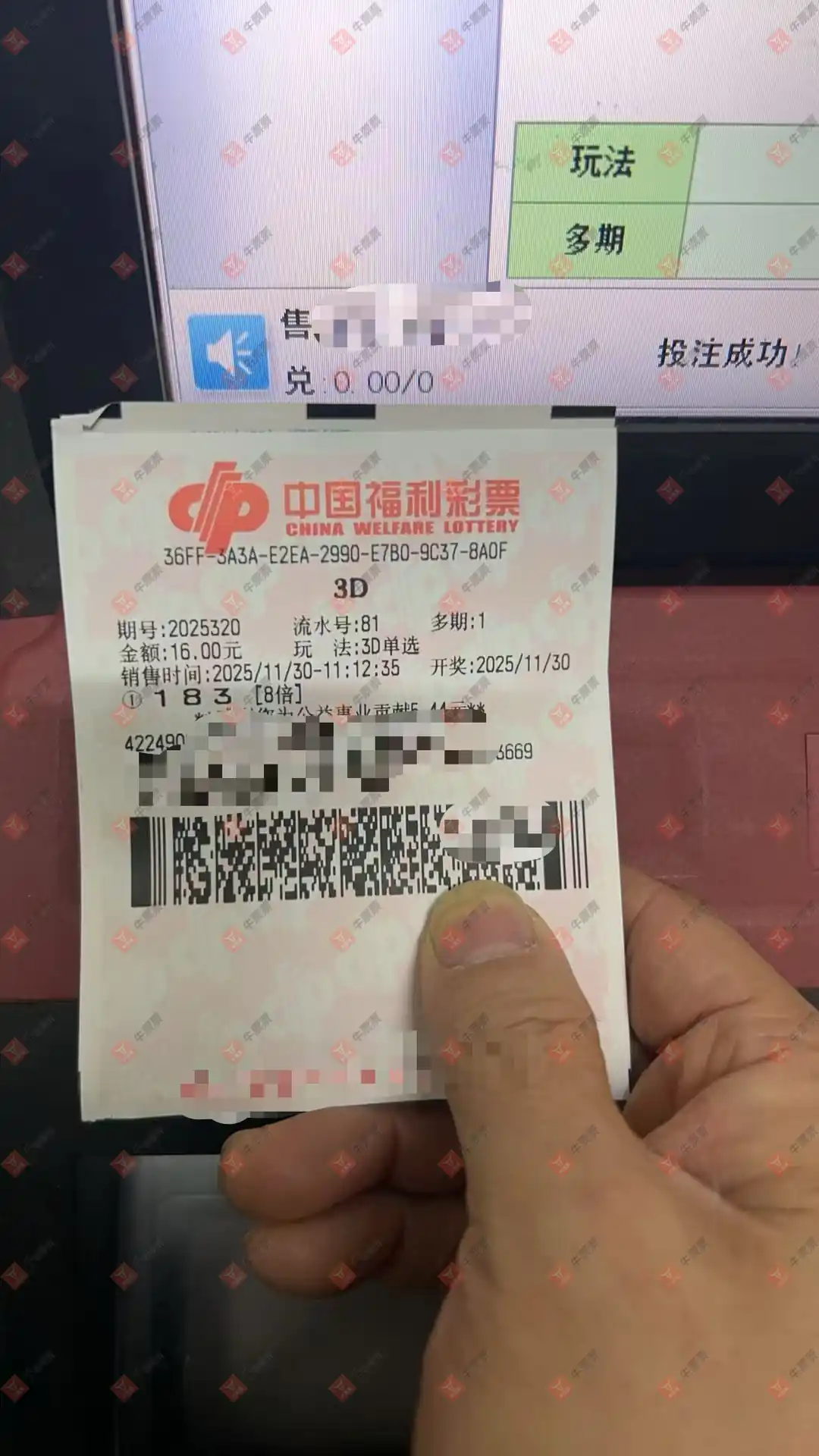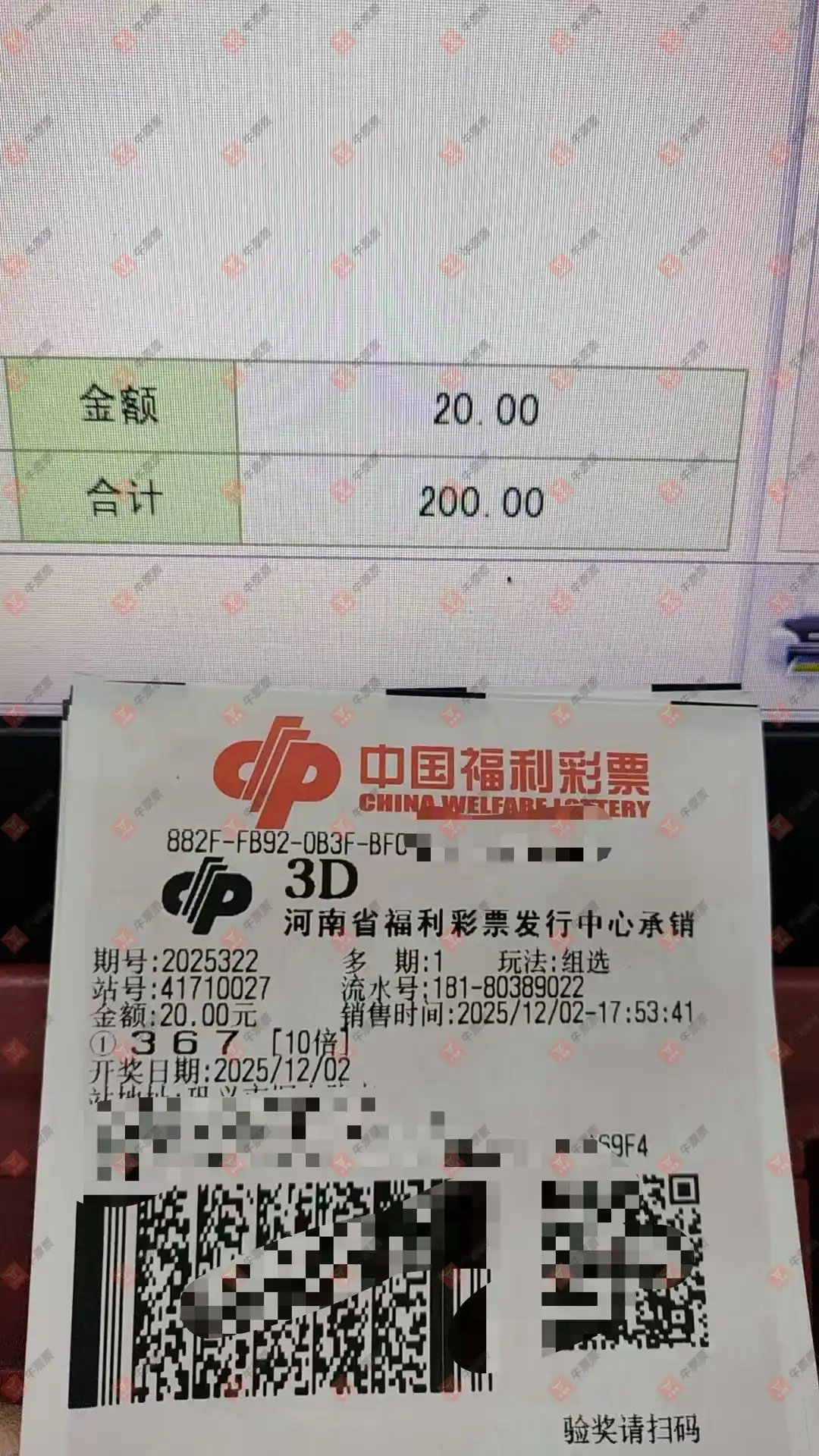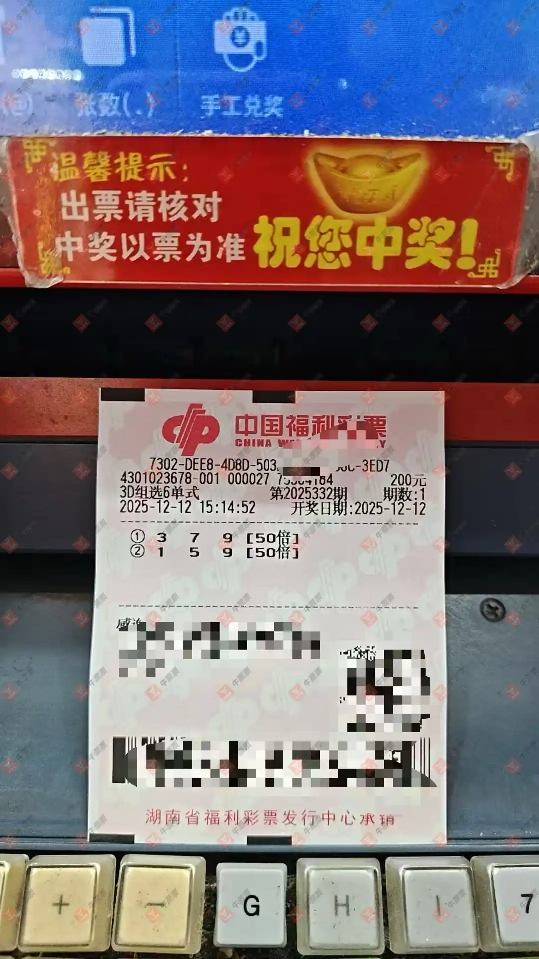福彩3D 2025331期 晒中