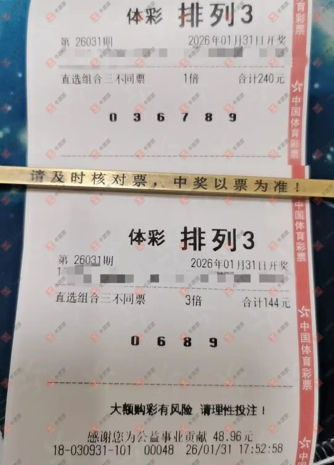 排列三 2026031期 晒中