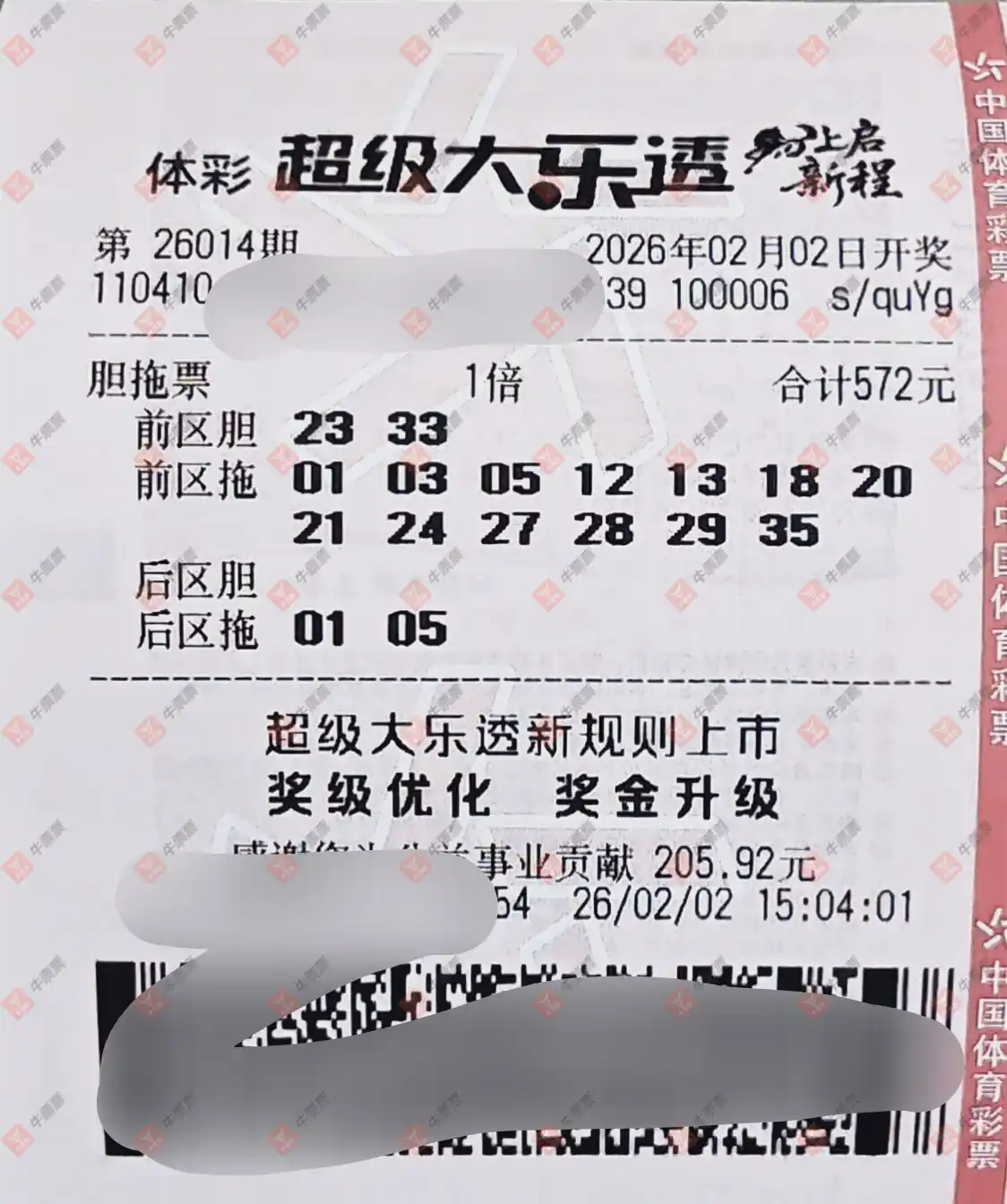 大乐透 2026014期 晒中