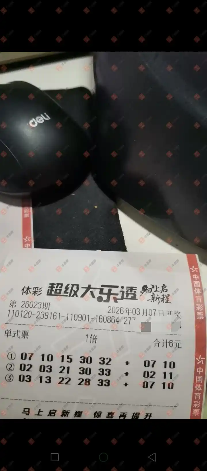 大乐透 2026023期 晒中