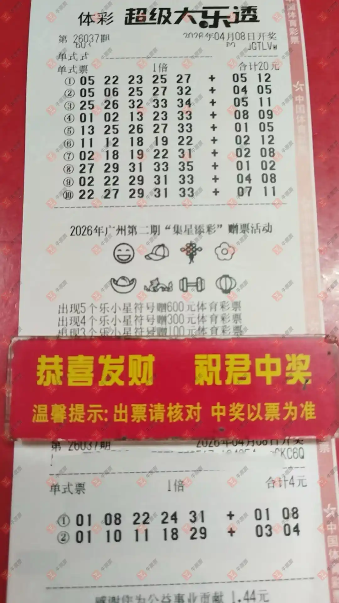 大乐透 2026036期 晒中