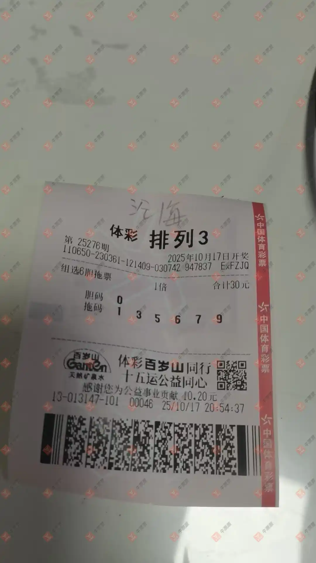 福彩3D 2025276期 晒中
