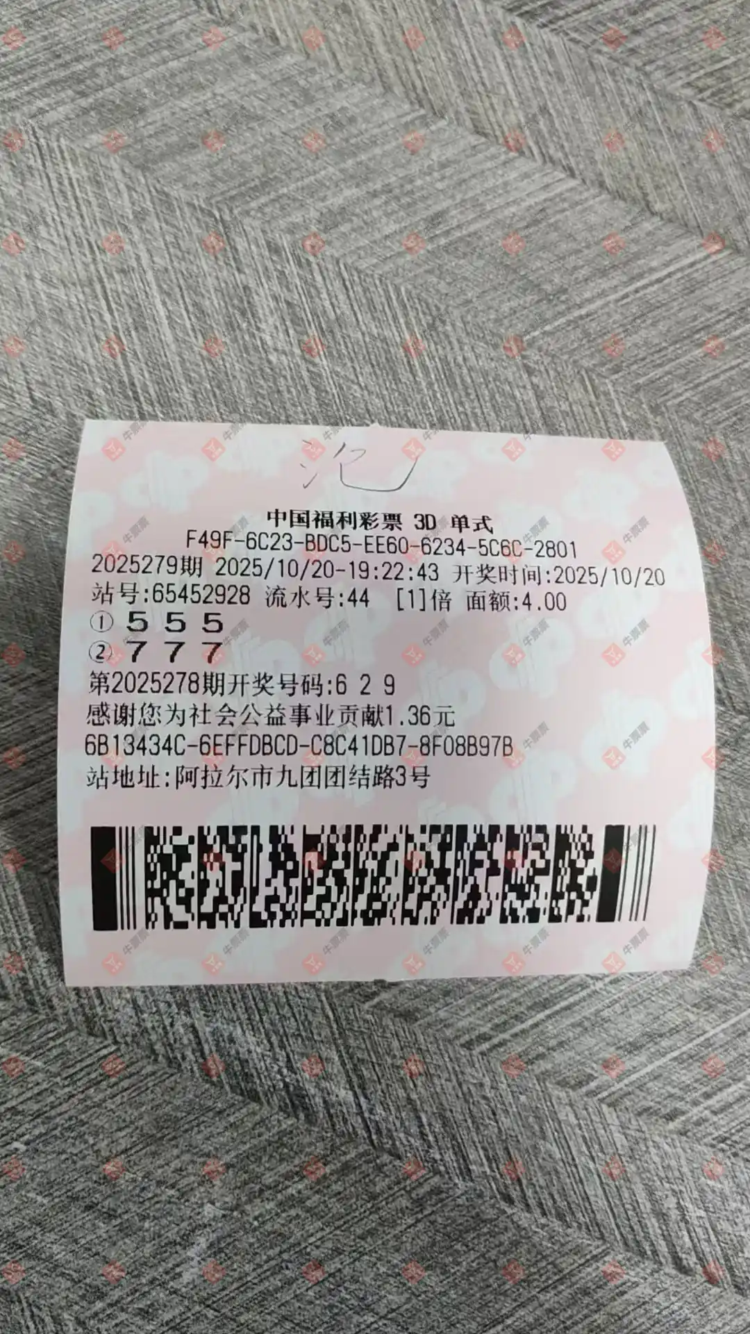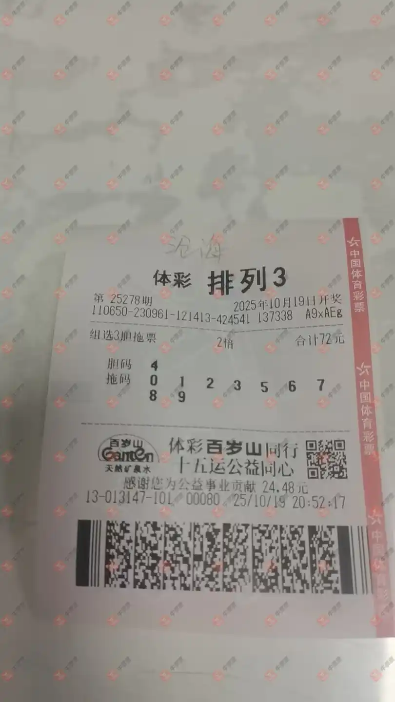 福彩3D 2025275期 晒中