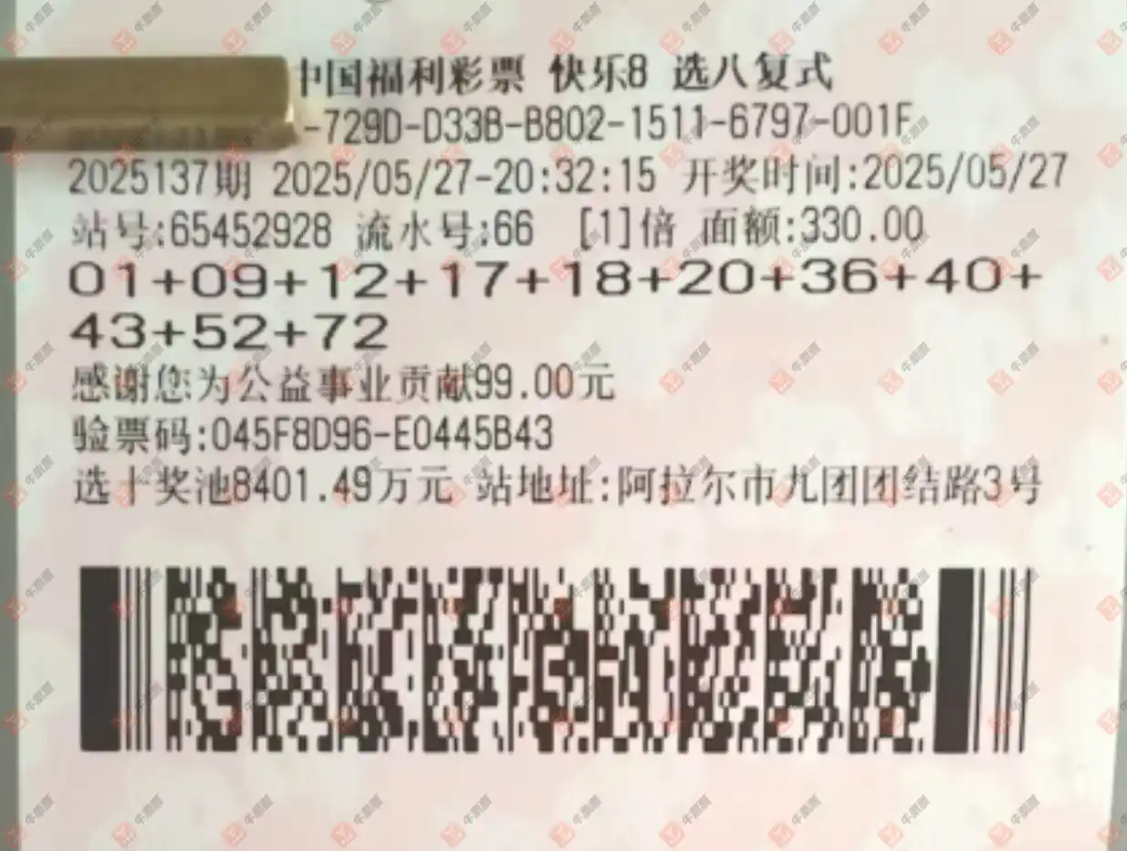 快乐8 2025137期 晒中