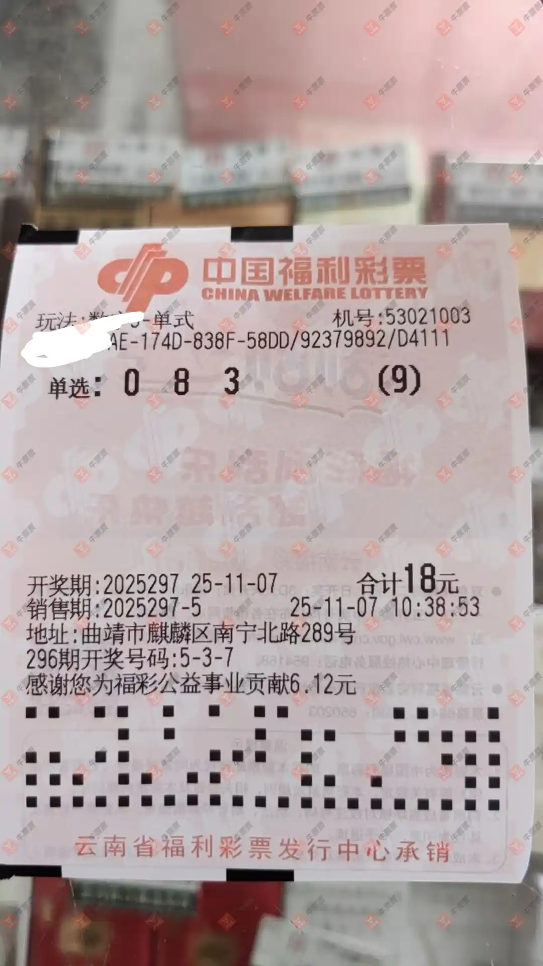 福彩3D 2025296期