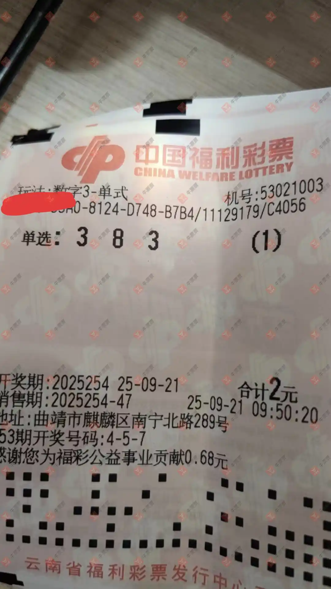 福彩3D 2025254期